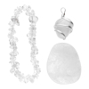 Ste pripravljeni na odkrivanje čarobnosti in energije kristala Quartz? Naš edinstveni darilni paket kristalov, ki vsebuje zapestnico Quartz, obesek iz kristala Quartz in žepni kamen Quartz, je popolno darilo za vse in nas popelje v svet čiste energije, harmonije in notranjega ravnovesja.